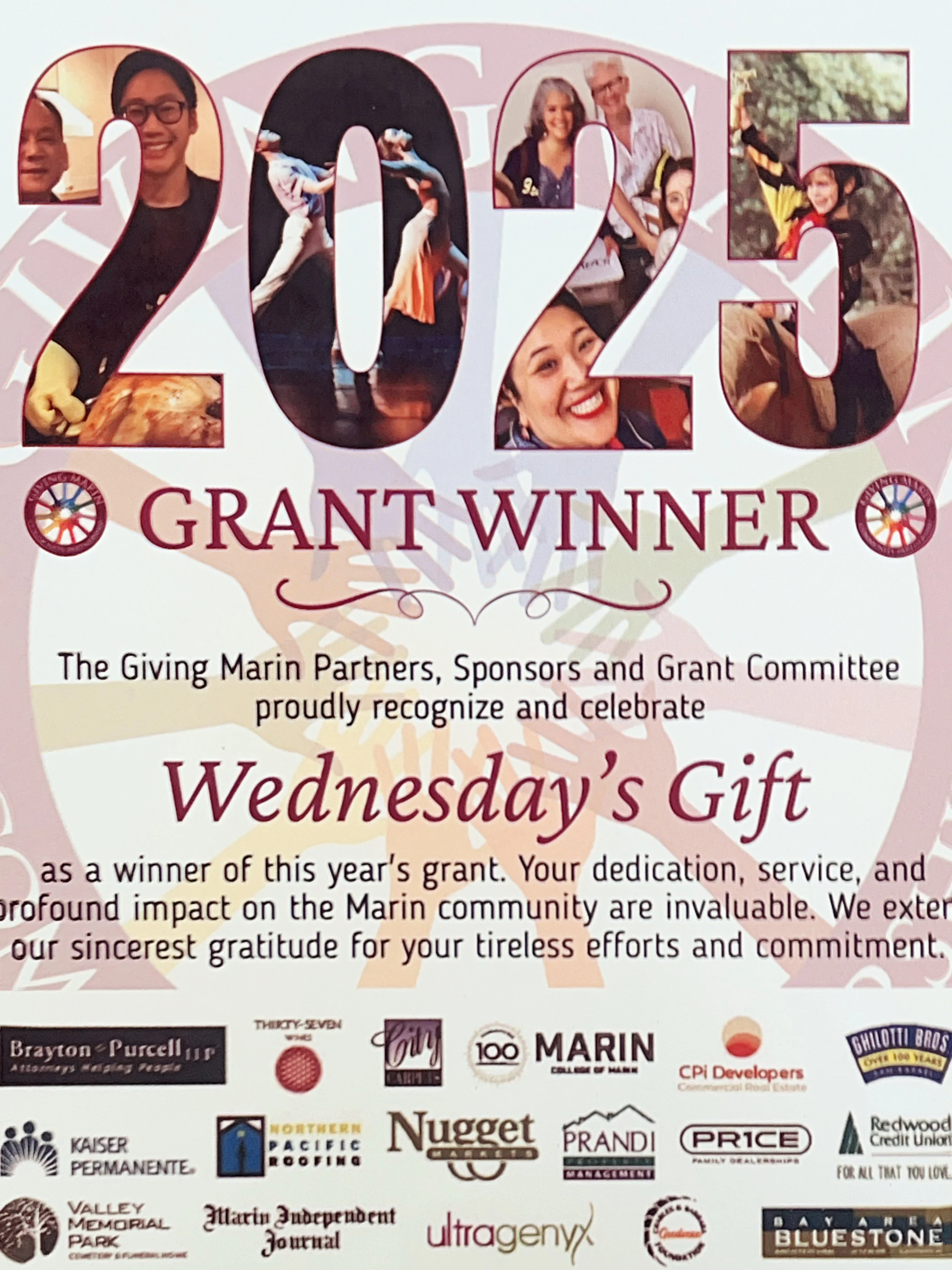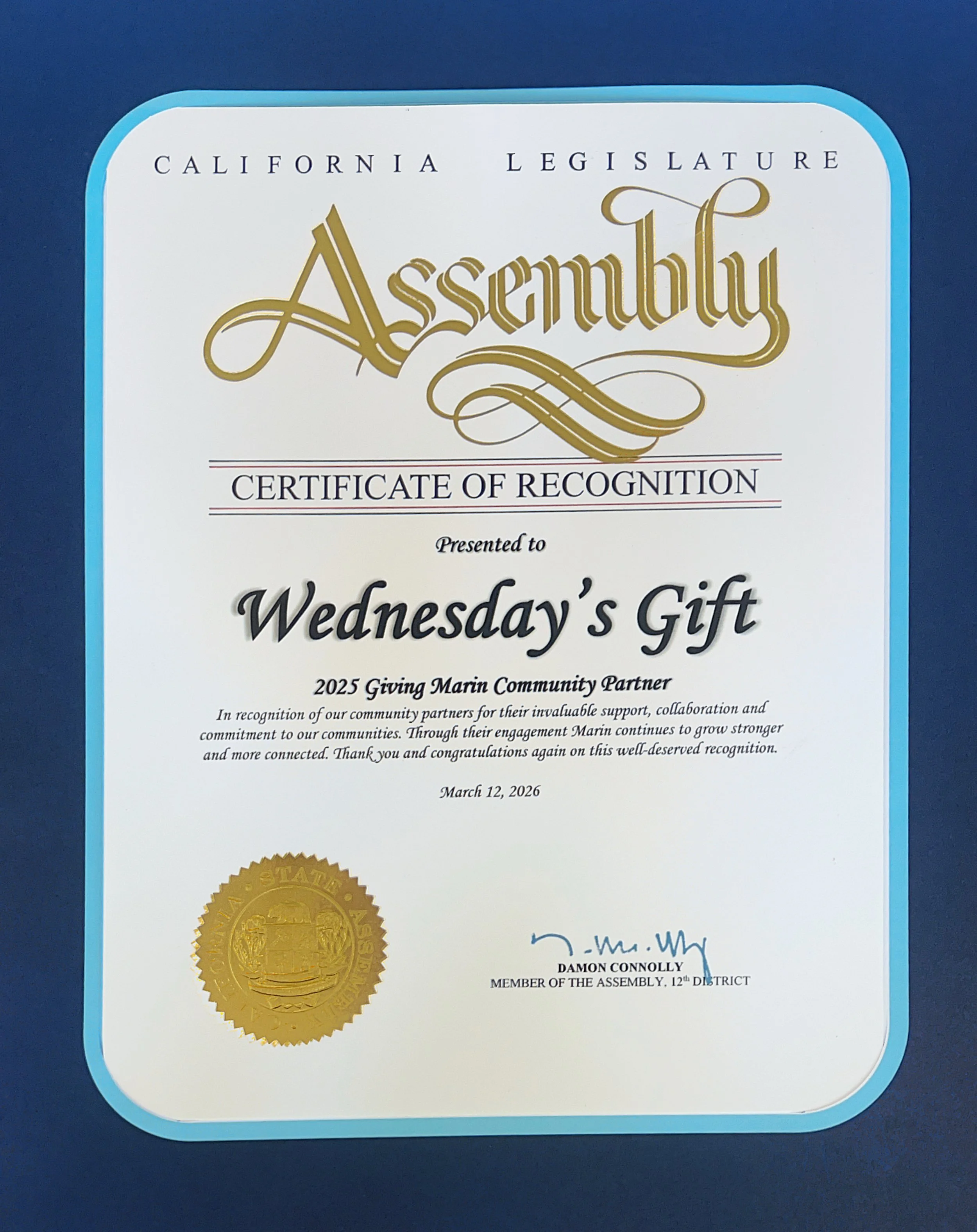 We are proud to be recognized by the California Legislature and the Giving Marin Parners for our commitment to our community.